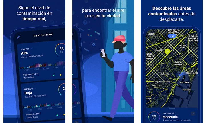 La app utiliza su gran infraestructura para recopilar, desde miles de fuentes, mediciones continuas de la calidad del aire, alergénicos ambientales y el estado del tiempo en todo el mundo. A partir del aprendizaje automático y la inteligencia artificial proporcionan datos muy precisos y en tiempo real sobre estos factores que afectan la salud a nivel de calle, y permite conocer los contaminantes que respiramos, sus fuentes y efectos, así como a evitarlos.