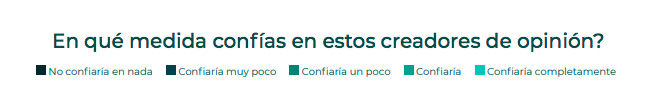 Particularmente en México las personalidades en las que confiarían en orden de porcentajes son: científicos, periodistas, familia, actores, influencers y de últimos políticos.